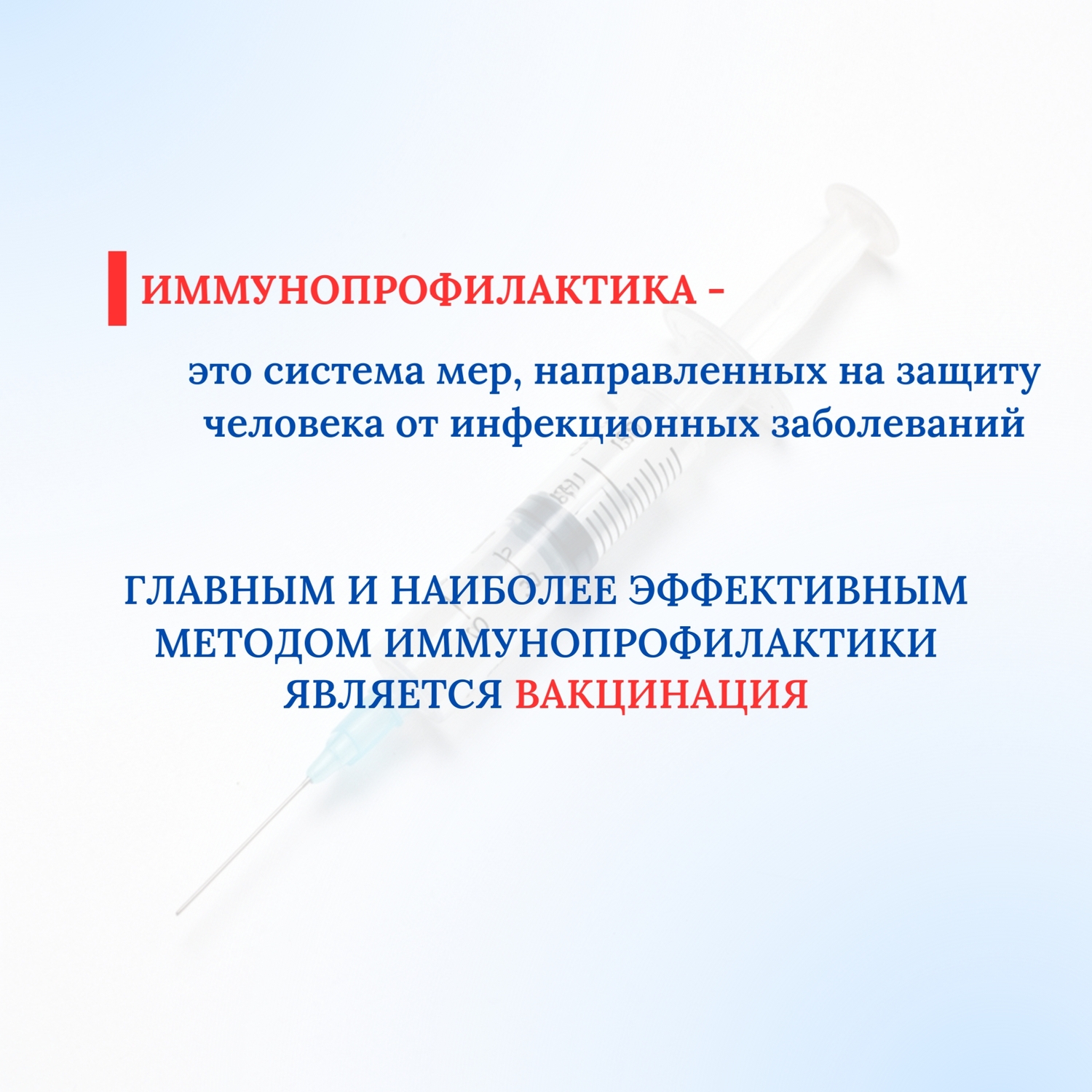 Иммунопрофилактика - самый эффективный и безопасный способ борьбы с инфекциями. Главным и наиболее эффективным методом иммунопрофилактики является вакцинация.